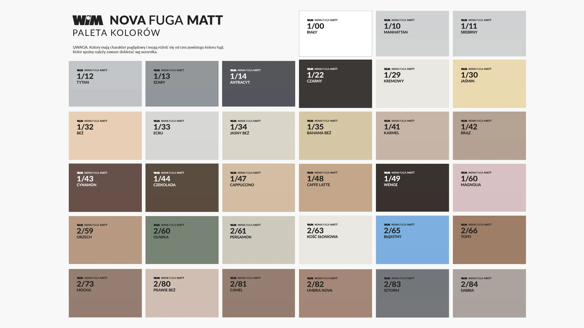 - Kolory zgodne z gamą kolorystyczną WIM Fuga Nova Matt